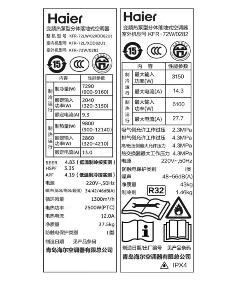 海尔(Haier)KFR-72LW/02XDD82U1 二级能效 3匹 变频冷暖 柜式空调(台)