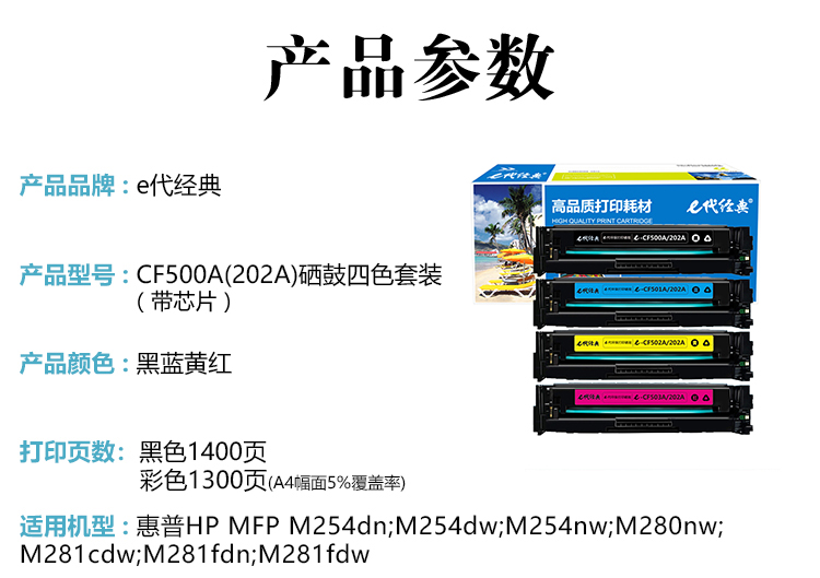 e代经典HPCF500A(202A)硒鼓彩四色套装(套)(适用:惠普HP MFP M254dn;M254dw;M254nw;M280nw;M281cdw;M281fdn;M281fdw)