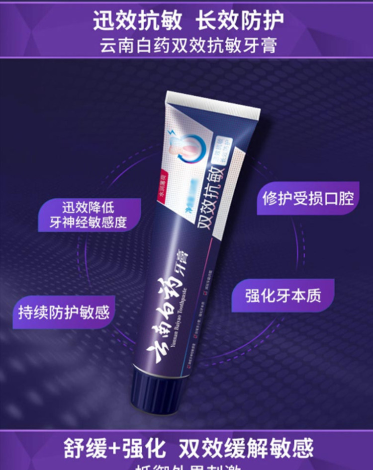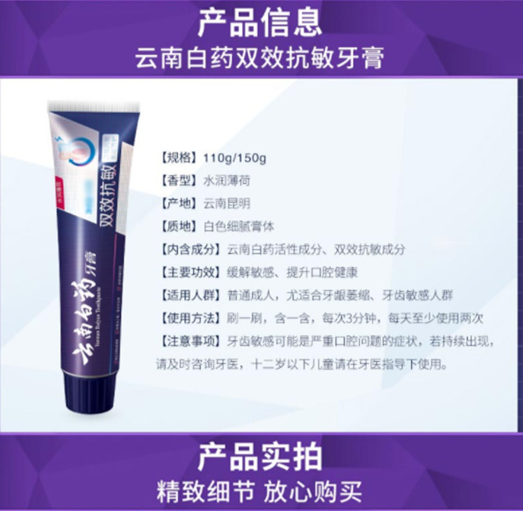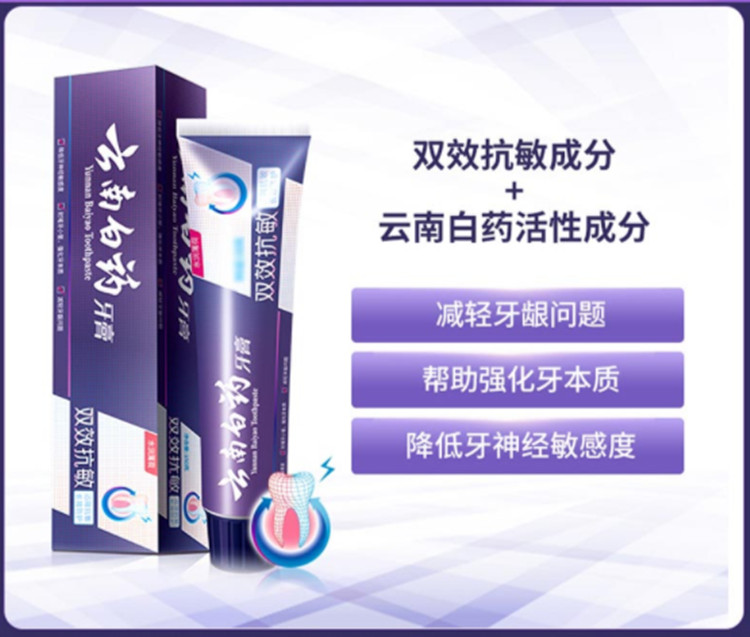 品牌:云南白药(YUNNANBAIYAO) 型号:110g 商品标题:云南白药110g双牙膏效抗敏水润薄荷(单位:支) 销售单位:支