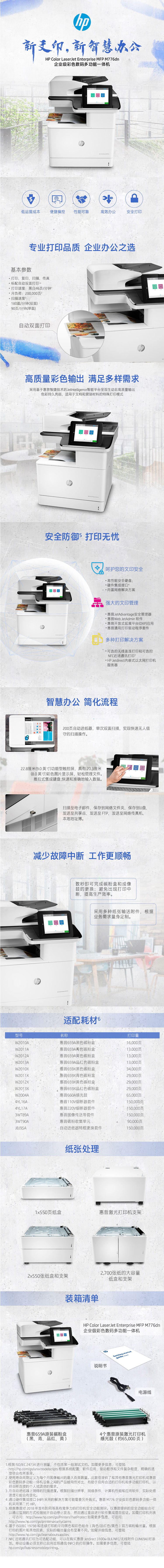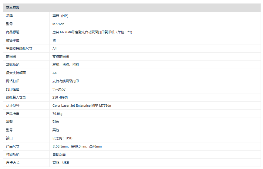 商品标题:惠普(HP) M776dn 彩色激光一体机A4(打印/复印/扫描)(台)