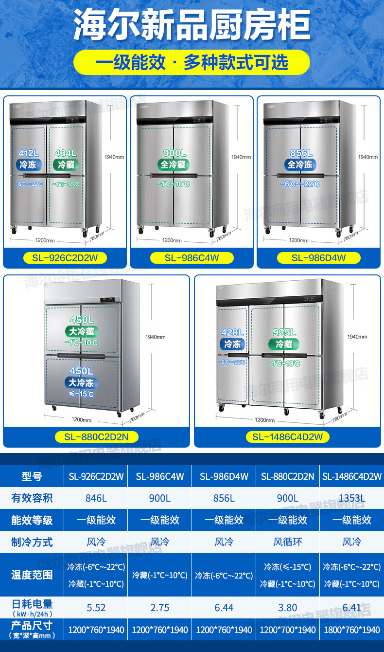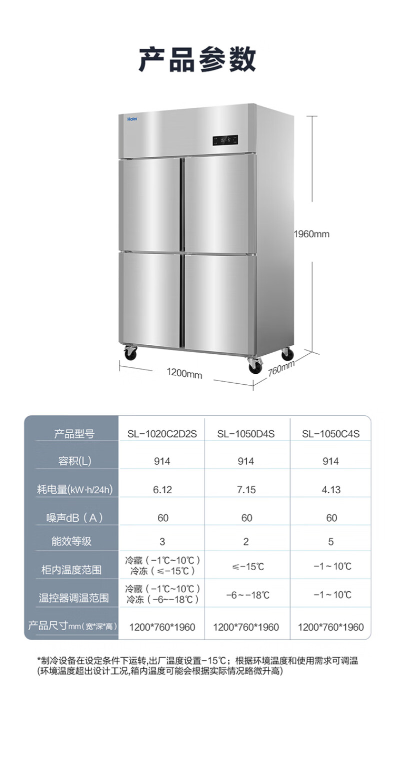 商品标题:海尔(Haier)SL-1450C3D3S商用厨房冰箱 六门双温1450L(台)