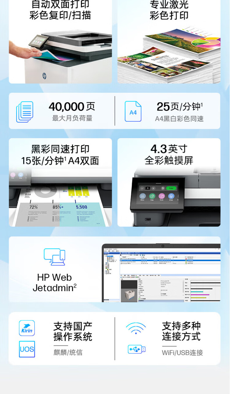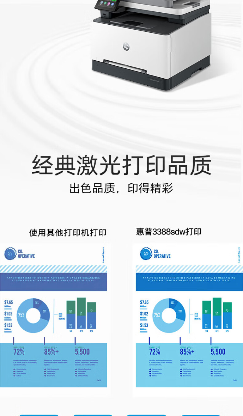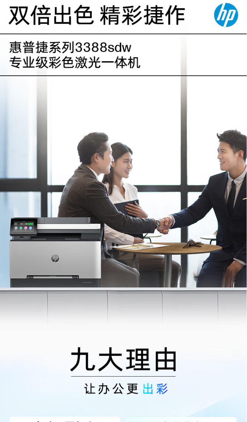 商品标题:惠普(HP)打印机 3388sdw a4彩色激光复印机扫描机一体机自动双面打印商用办公无线连接可打红头文件 3388sdw(官方1年上门保-修)(单位:台)