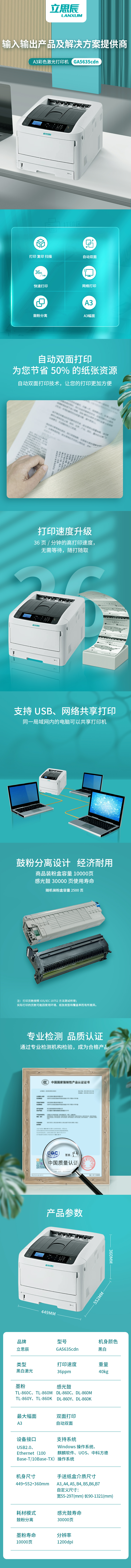 商品标题:立思辰(LANXUM) GA5635cdn A3彩色激光打印机 (计价单位:台)