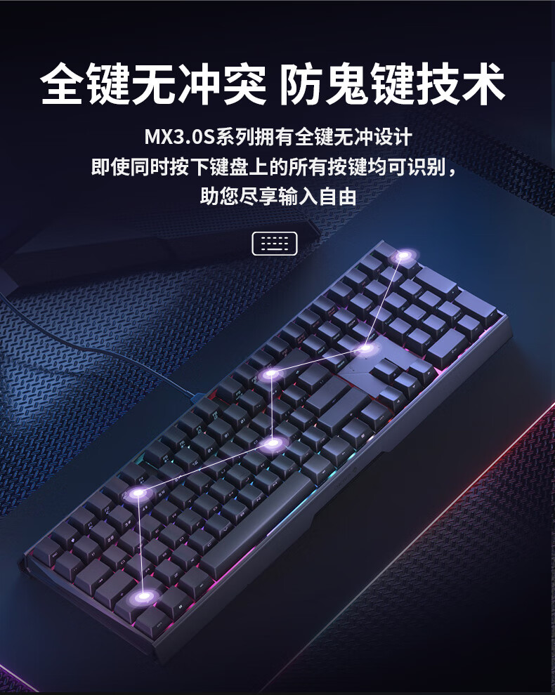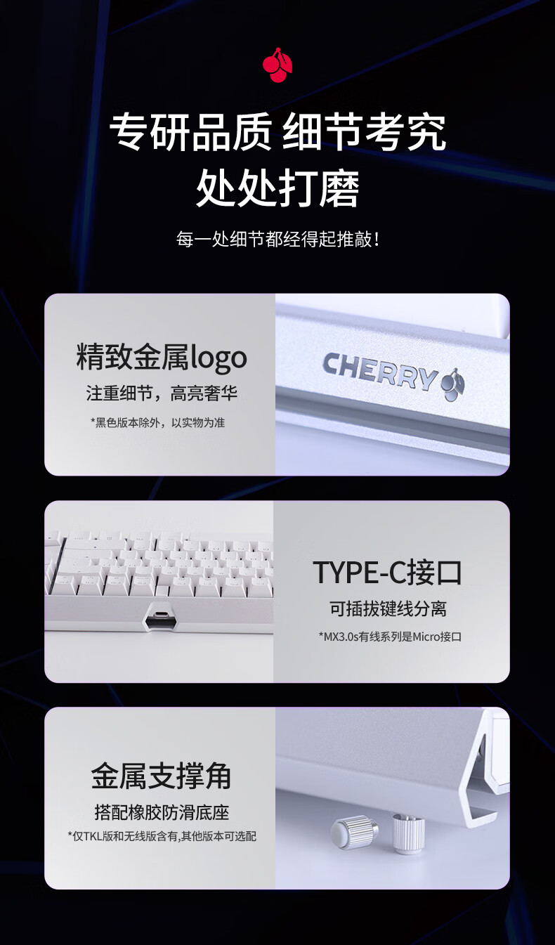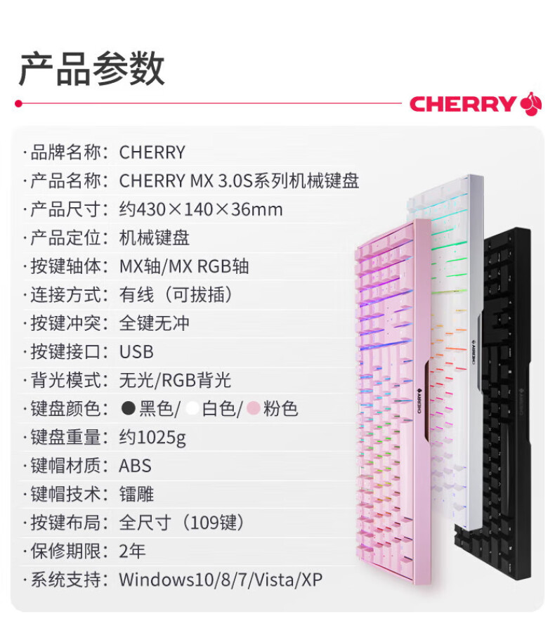 商品标题:CHERRY樱桃 MX3.0S TKL机械键盘 黑色茶轴(个)