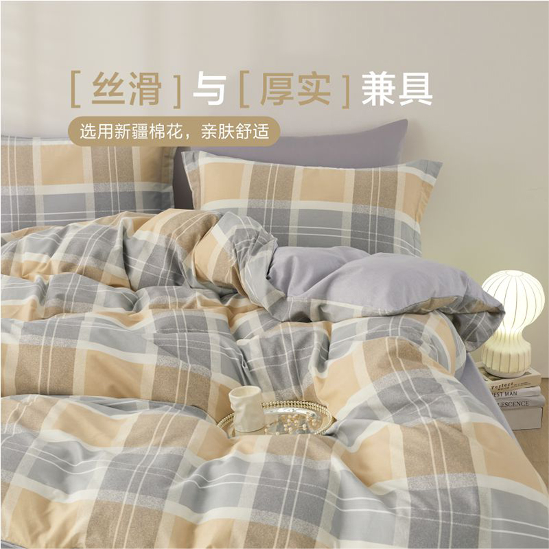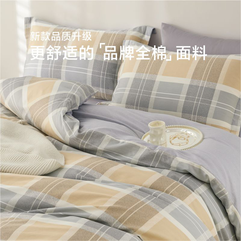 商品标题:博洋家居 WT902507042A 全棉四件套—条格序语 适用于1.5米床被套200*230cm(单位:套)