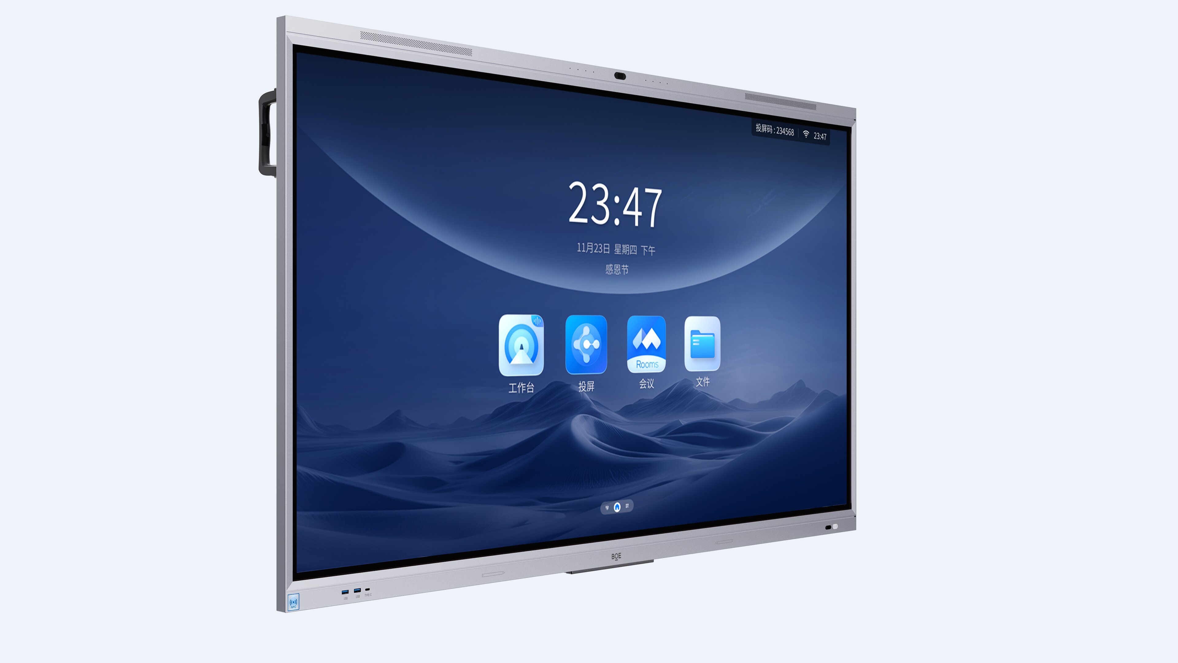 商品标题:京东方BOE 启辰系列会议平板 BWB86-CA01F 可触摸智慧一体机 专业高配办公 86寸4K红外屏,4800W摄像头、8阵列麦克风&音箱、八核8GB+64GB含挂墙支架(单位:台)