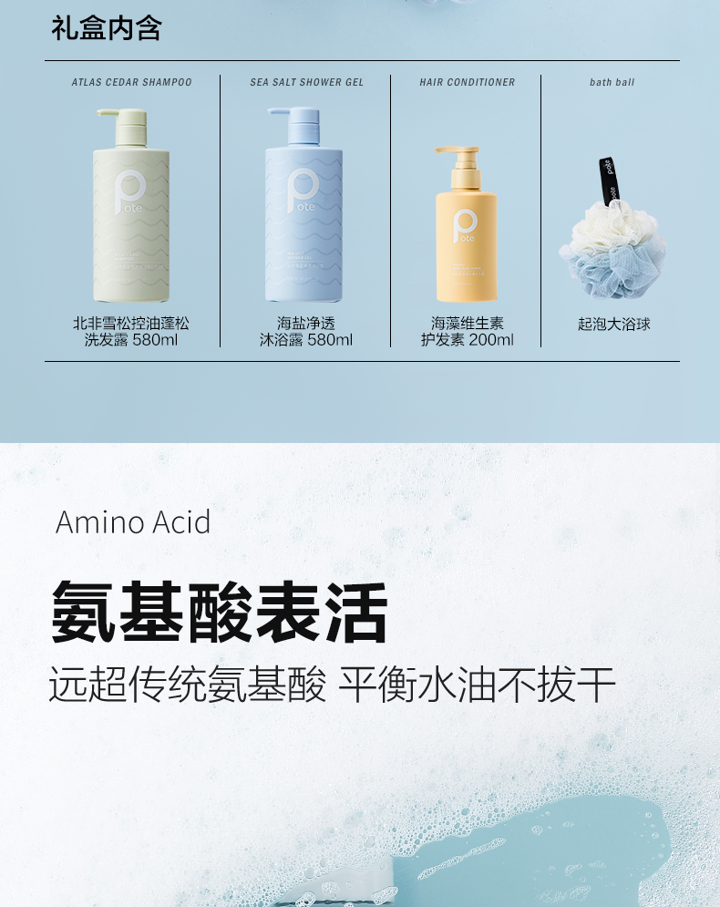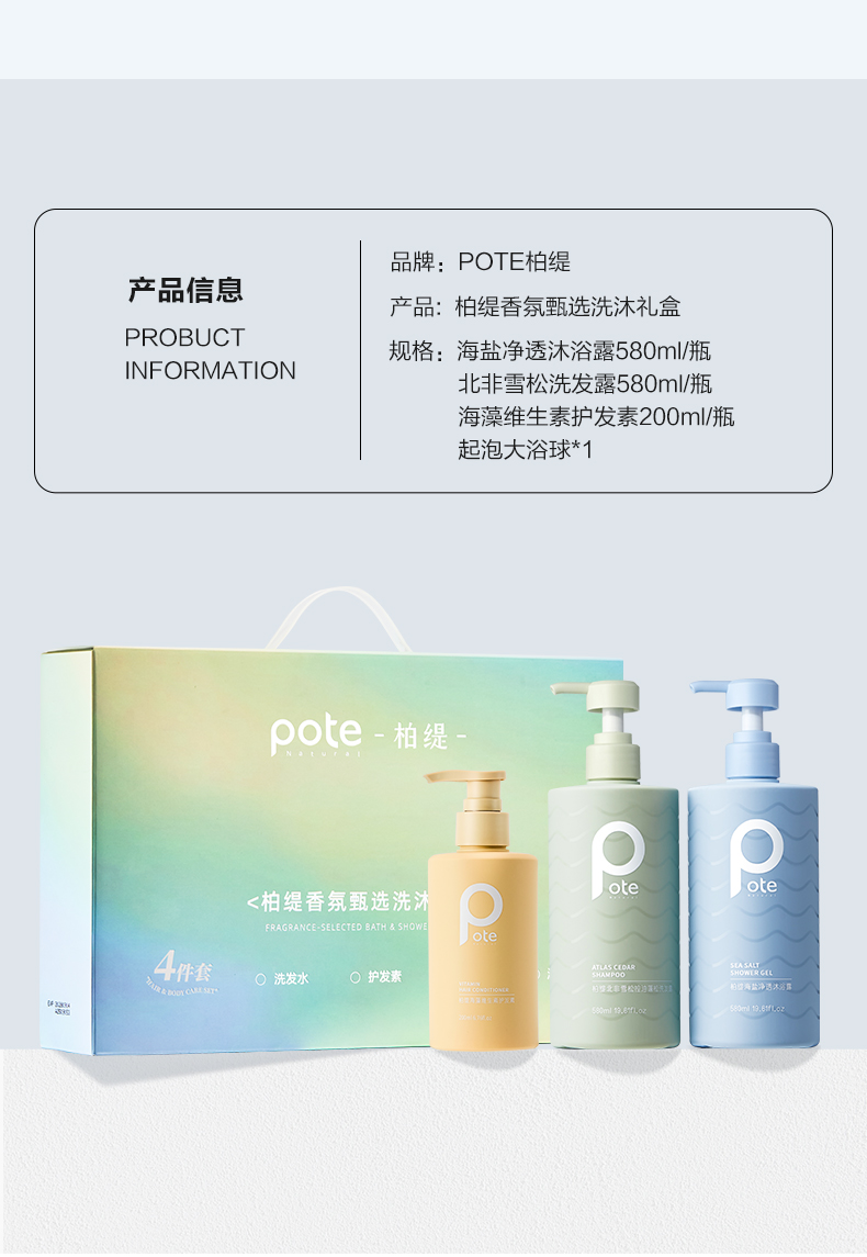 商品标题:柏缇(POTE)香氛臻选洗沐套盒(洗发水580ml+沐浴露580ml+沐浴球)(单位:套)