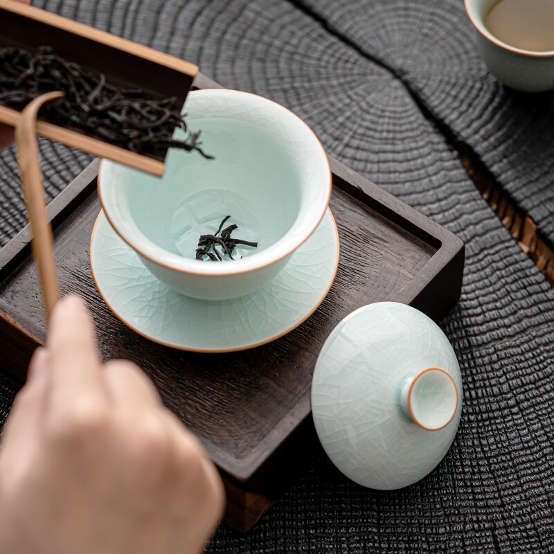 苏氏陶瓷(SUSHI CERAMICS)J0675汝窑卵青三才盖碗开片可养金线初心功夫茶具泡茶碗(单位:个)