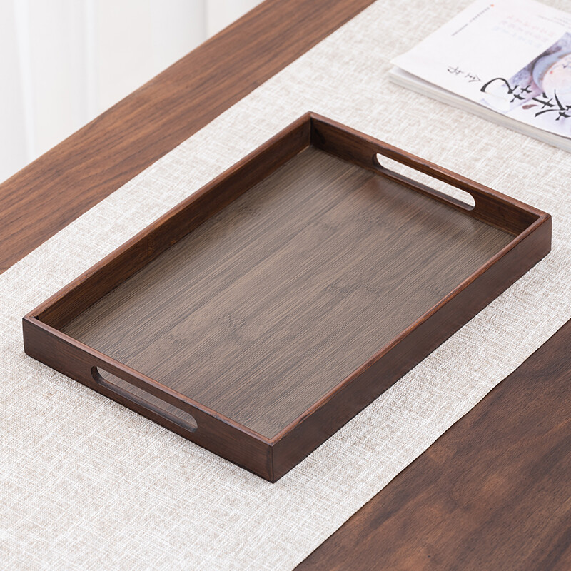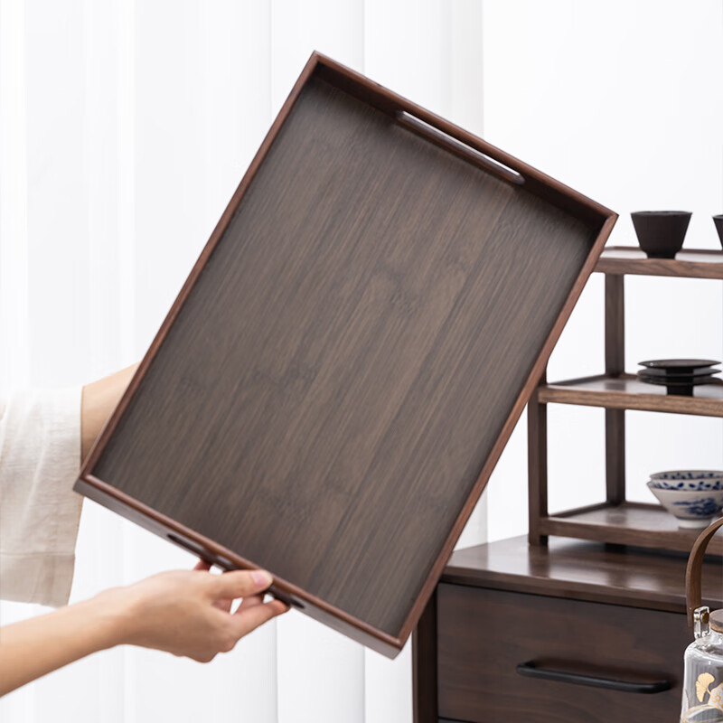 苏氏陶瓷(SUSHI CERAMICS)J53胡桃色竹制托盘干泡盘简约小茶台带提手长方形36*25cm(单位:个)