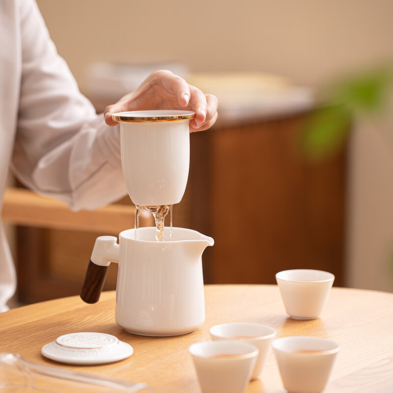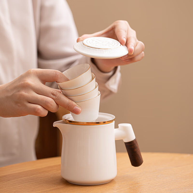 苏氏陶瓷(SUSHI CERAMICS)J1033描金羊脂玉瓷手柄快客杯旅行包茶具(单位:套)