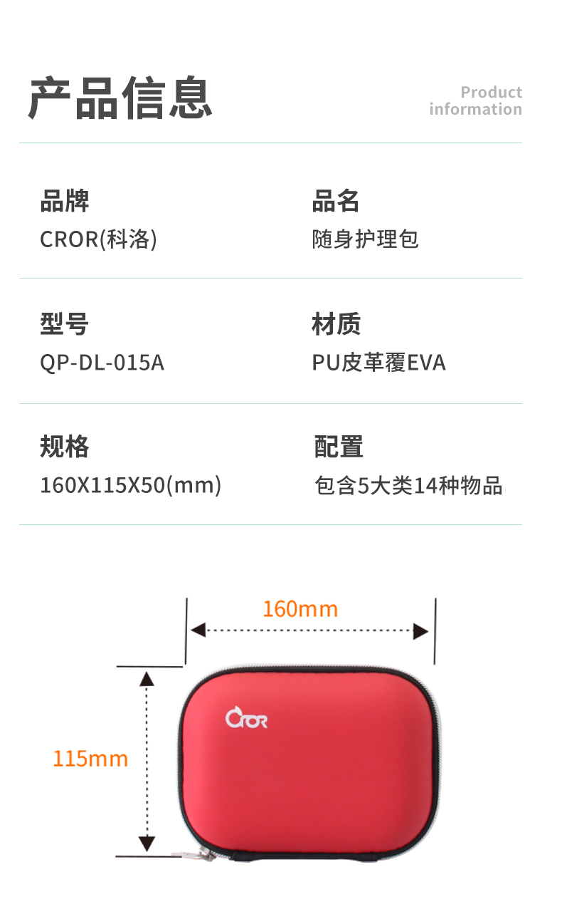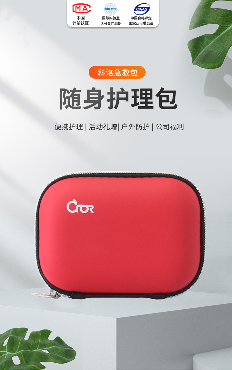 商品标题:科洛(CROR)随身护理包 QP-DL-015A 急救包 红色 PU革覆EVA 160*115*50mm 礼品福利个人防护急救套装 (单位:套)