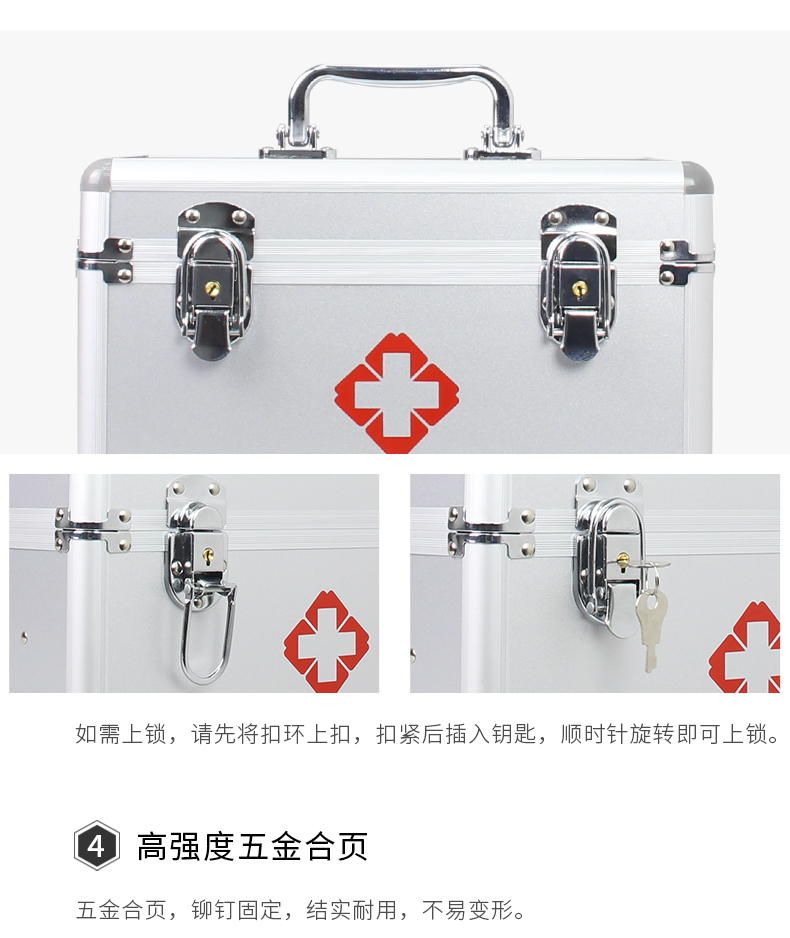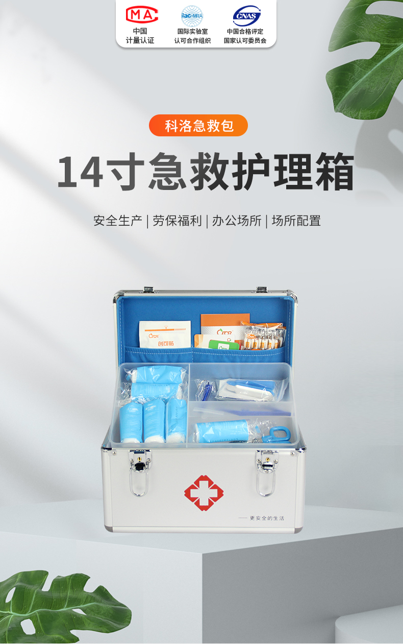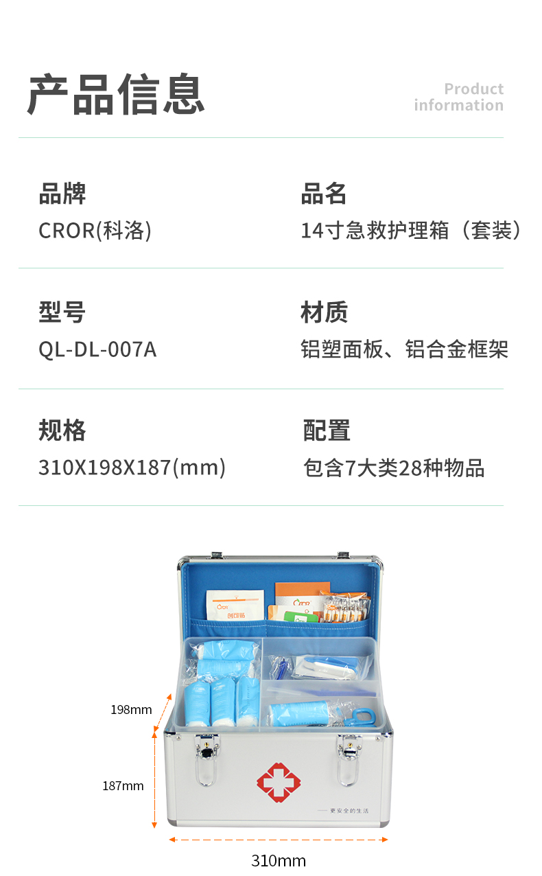 商品标题:科洛(CROR)14寸急救护理箱(套装)QL-DL-007A 急救包/箱 闪银色 优质铝塑面板+铝合金框架 310*198*187mm (单位:套)