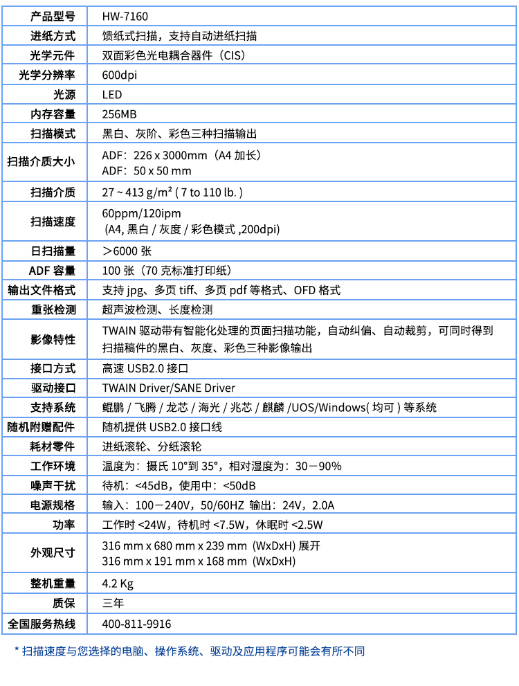 商品标题:汉王(Hanvon)HW-7160高速档案扫描仪