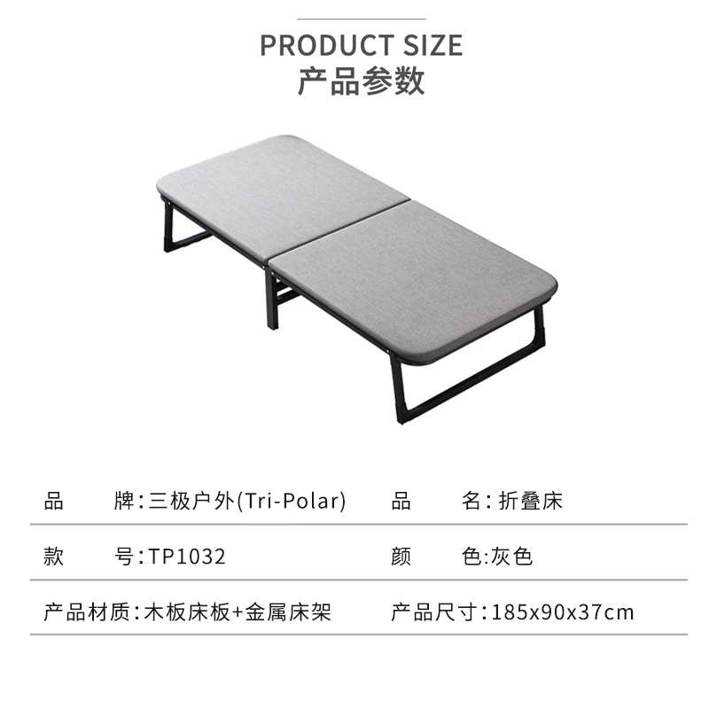 商品标题:三极户外(Tri-Polar)TP1032办公室折叠床方管床 灰色185*90*37cm (张)