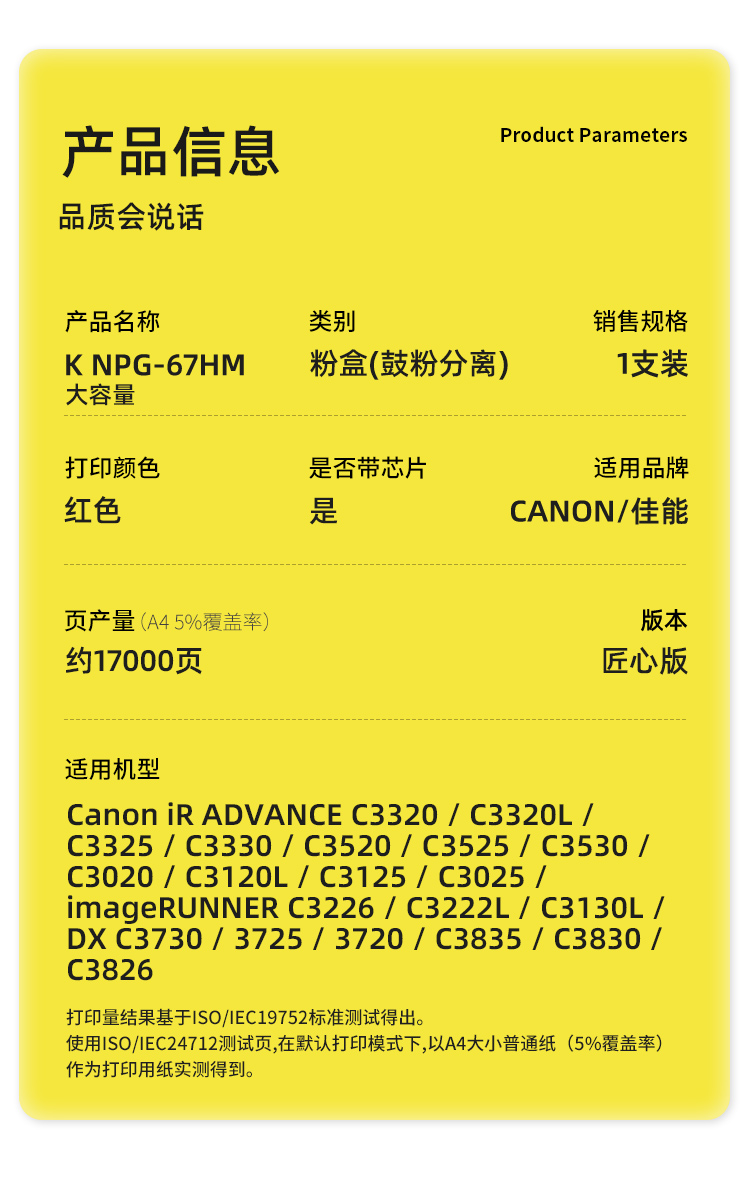 科思特(KST)兼容K NPG-67HM 匠心版大容量粉盒(鼓粉分离)红色(适用佳能Canon iR ADVANCE C3320/C3320L/C3325/C3330)打印页数:17000页(单位:支)