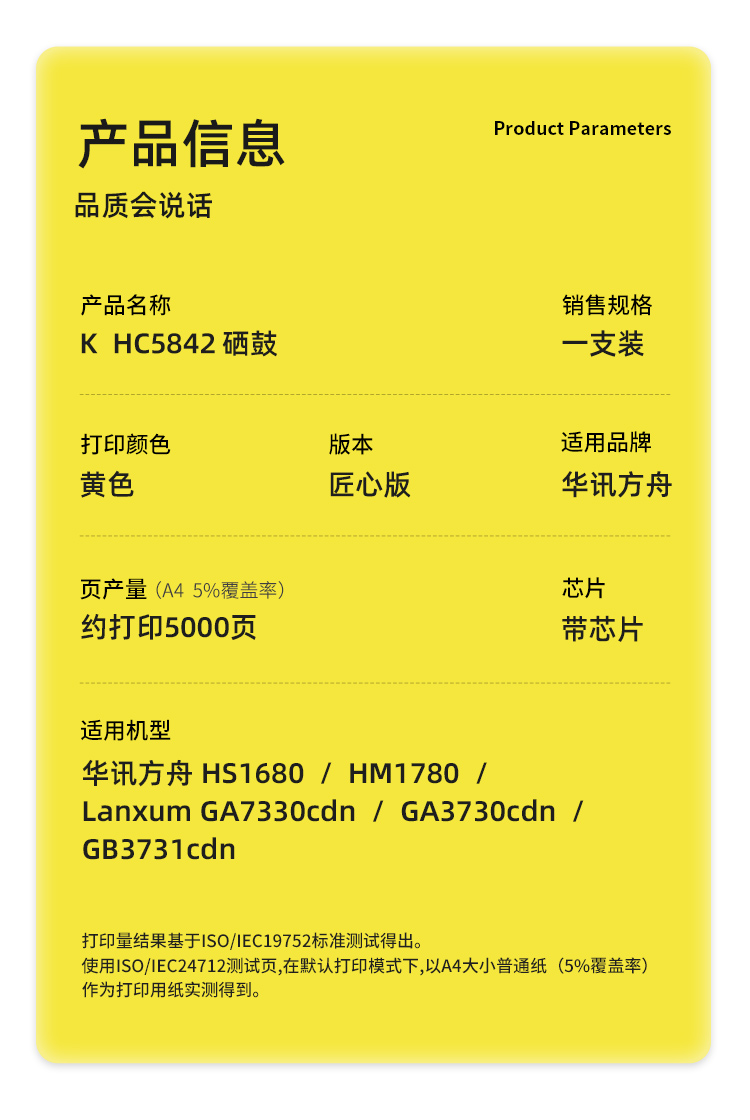 科思特(KST)兼容K HC5842 匠心版硒鼓(鼓粉一体)黄色(适用华讯方舟 HS1680/HM1780/立思辰 GA7330cdn/GA3730cdn/GB3731cdn)打印页数:5000页(单位:支)