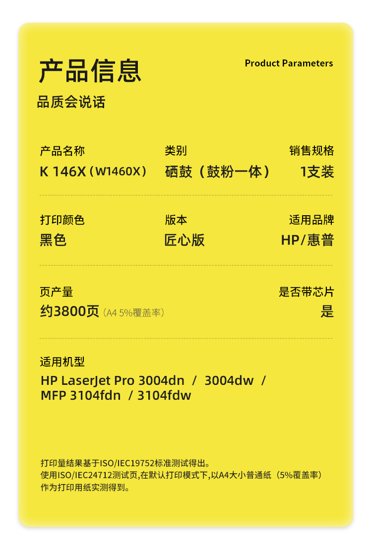 科思特(KST)兼容K 146X(W1460X) 匠心版大容量硒鼓(鼓粉一体)黑色(适用惠普LaserJet Pro 3004dn/3004dw/MFP 3104fdn/3104fdw)打印页数:3800页(单位:支)