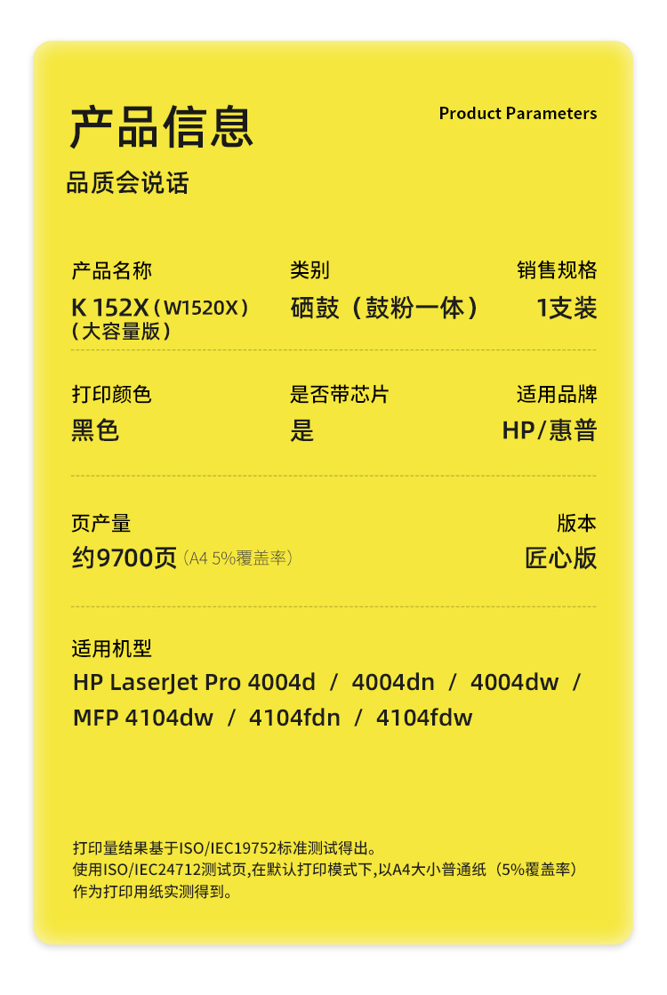 科思特(KST)兼容K 152X(W1520X)匠心版大容量硒鼓(鼓粉一体)黑色(适用惠普4004d/4004dn/4004dw/MFP 4104dw/4104fdn/4104fdw )打印页数:9700页(单位:支)