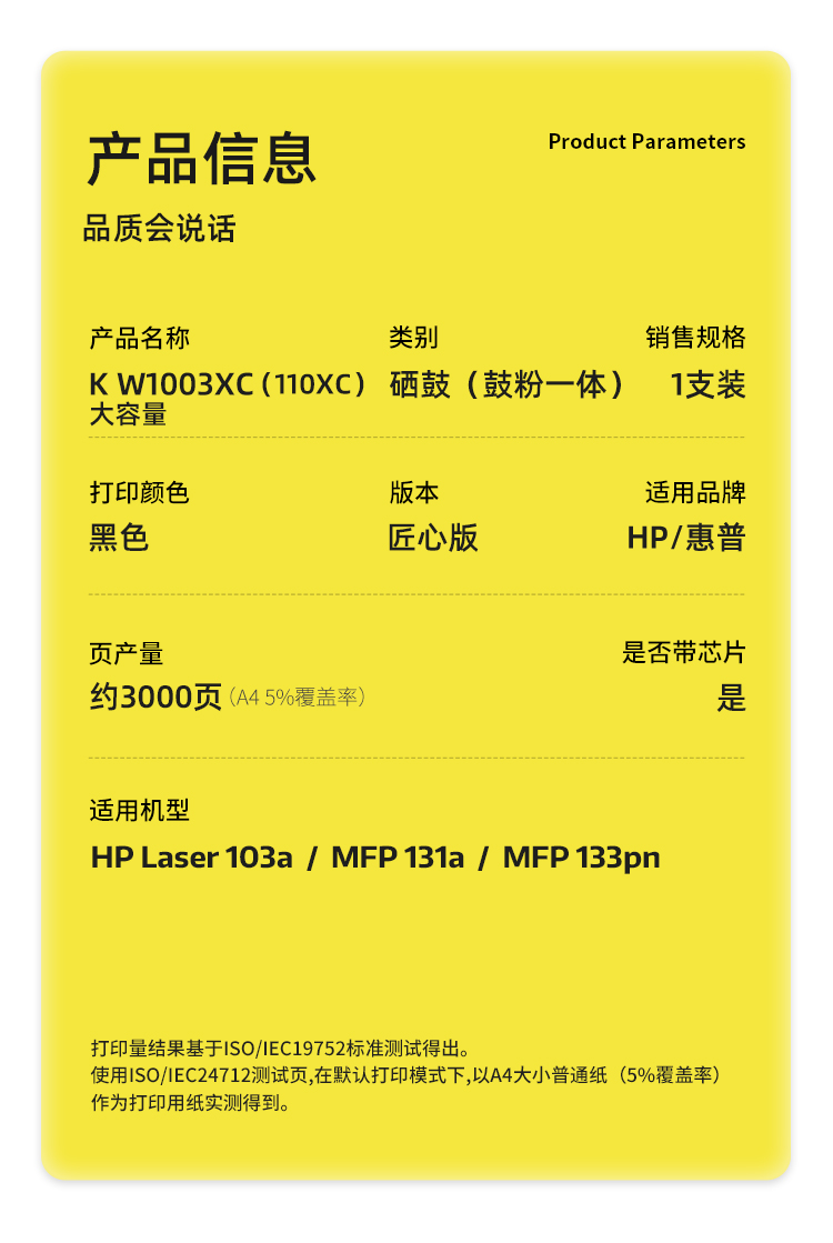 商品标题:科思特(KST)兼容K W1003XC(110XC)匠心版大容量硒鼓(鼓粉一体)黑色(适用惠普103a/MFP 131a/MF133pn)打印页数:3000页(单位:支)