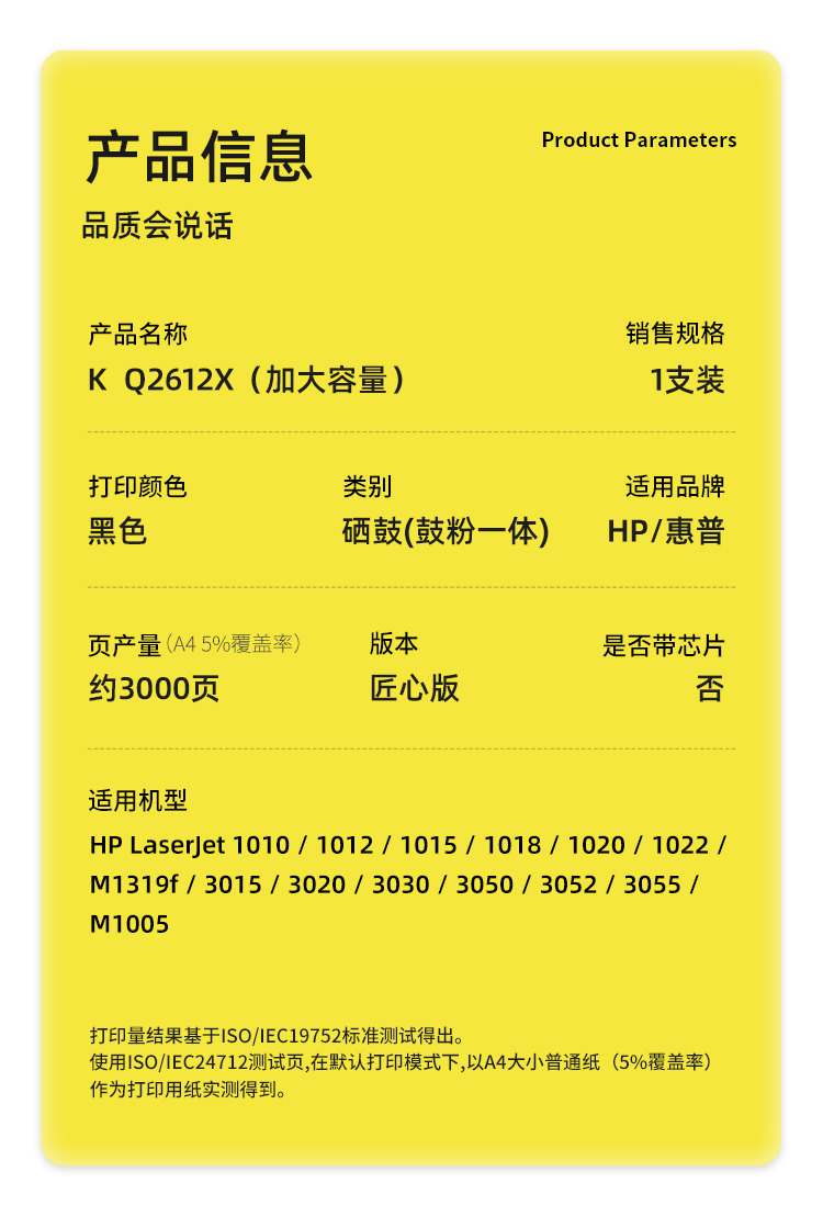 商品标题:科思特(KST)兼容K Q2612X 匠心版加大容量硒鼓(鼓粉一体)黑色(适用惠普1010/1012/1015/1018/1020)打印页数:3000页(单位:支)
