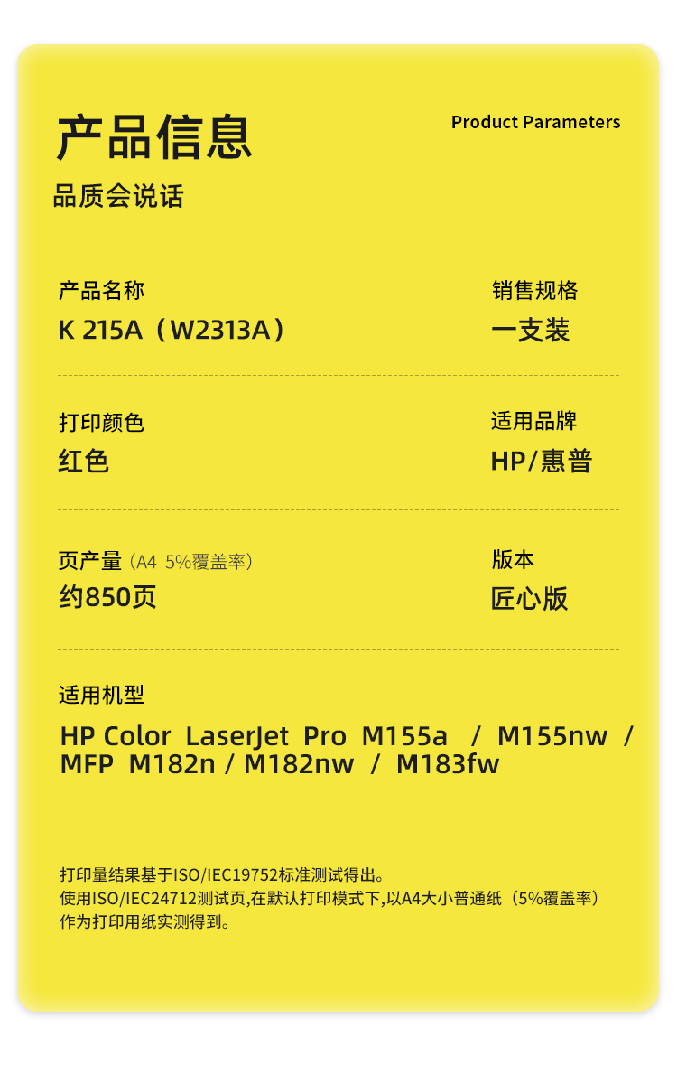 商品标题:科思特(KST)兼容K 215A(W2313A) 匠心版硒鼓(鼓粉一体)红色(适用惠普M155a/M155nw)打印页数:850页(单位:支)