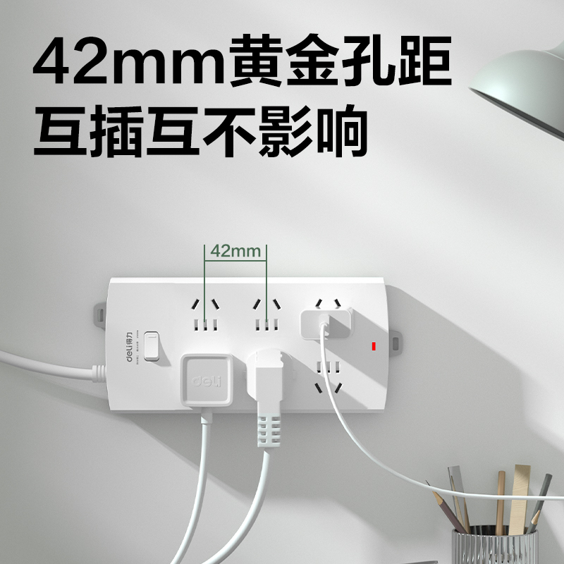 商品标题:得力LV8060(03)插座总控 6组 3米 (白)(单位:个)
