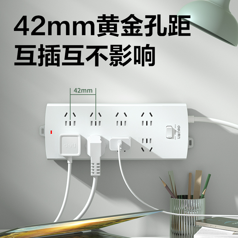 商品标题:得力LV8080(05)插座总控 8组 5米 (白)(单位:个)