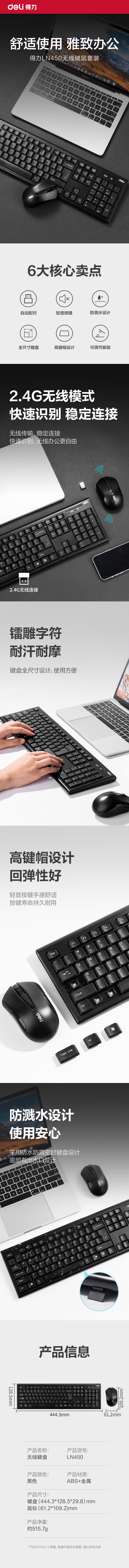 商品标题:得力(DELI)LN450 无线键鼠套装 黑色 (单位:个)