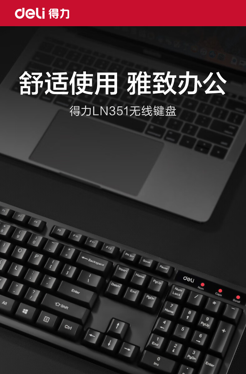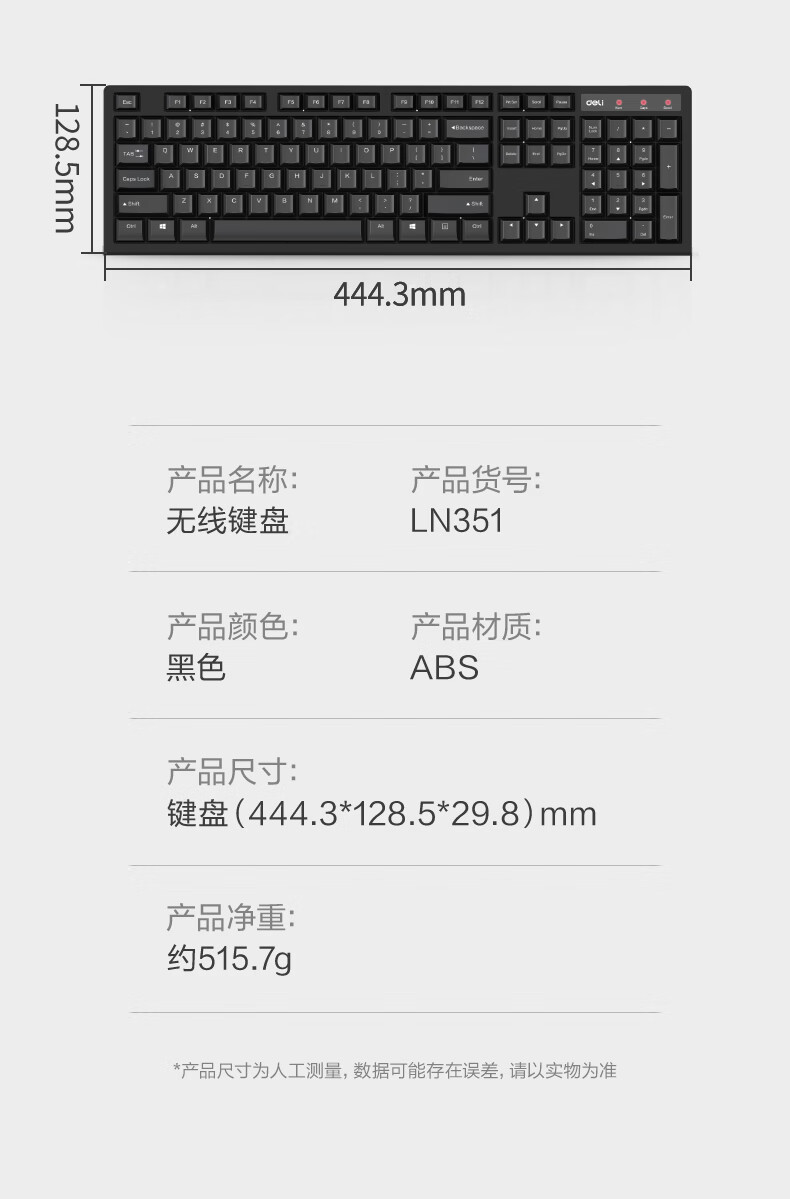 商品标题:得力(DELI)LN351 无线键盘 黑色 (单位:个)