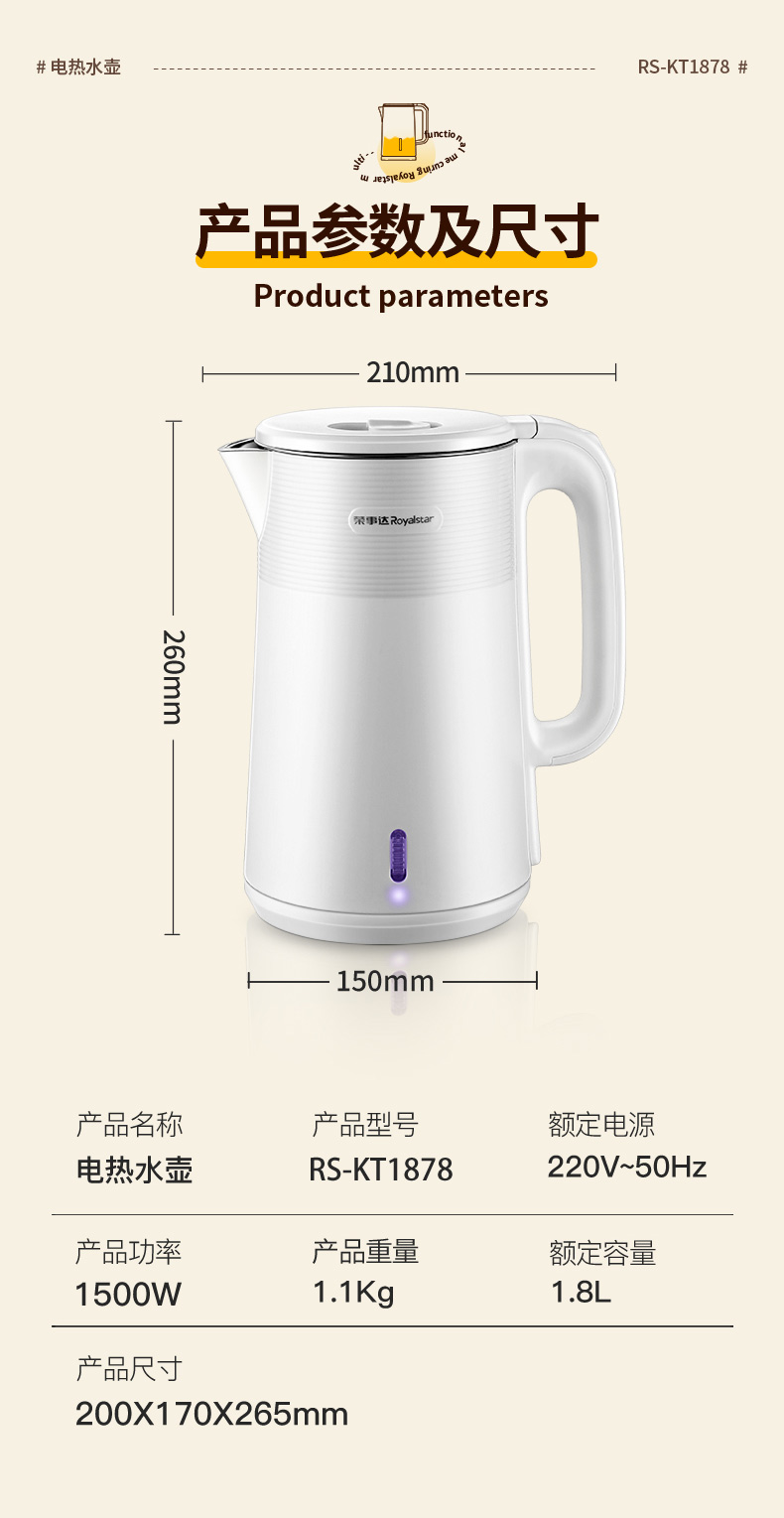荣事达(Royalstar)RS-KT1878电热水壶1.8L (单位:台)