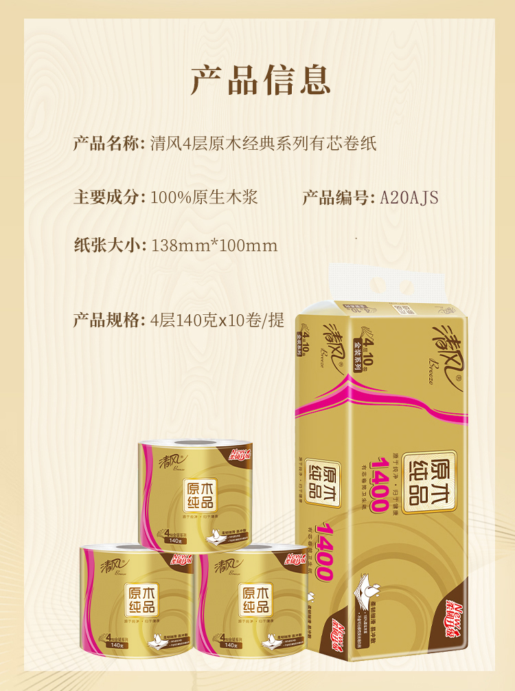 商品标题:清风(APP)A20AJS订制4层140克/卷*10*3卷筒卫生纸(单位:箱)