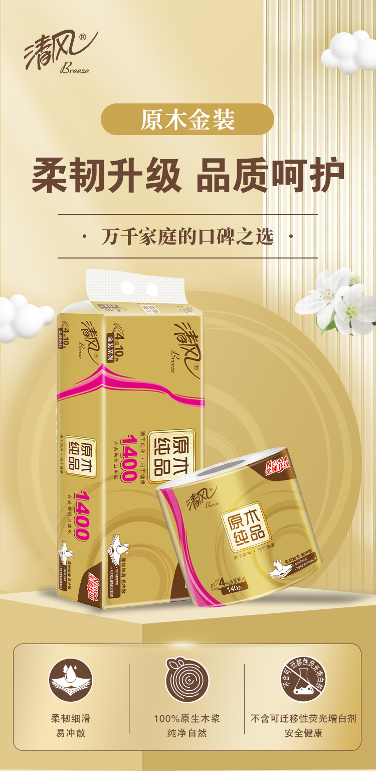清风 A20AJS 卷纸 4层140克/卷*10卷/提*3提/箱(单位:箱)