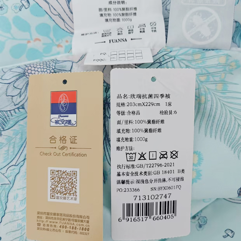 富安娜(FUANNA)欣瑞抗菌四季被203*229cm(1000g)(单位:床)
