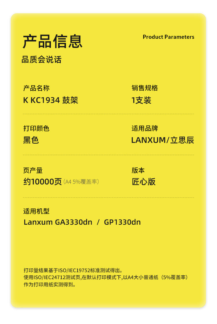 商品标题:科思特(KST)兼容K KC1934 匠心版鼓架(鼓粉分离)黑色(适用立思辰GA3330dn)打印页数:10000页(单位:支)