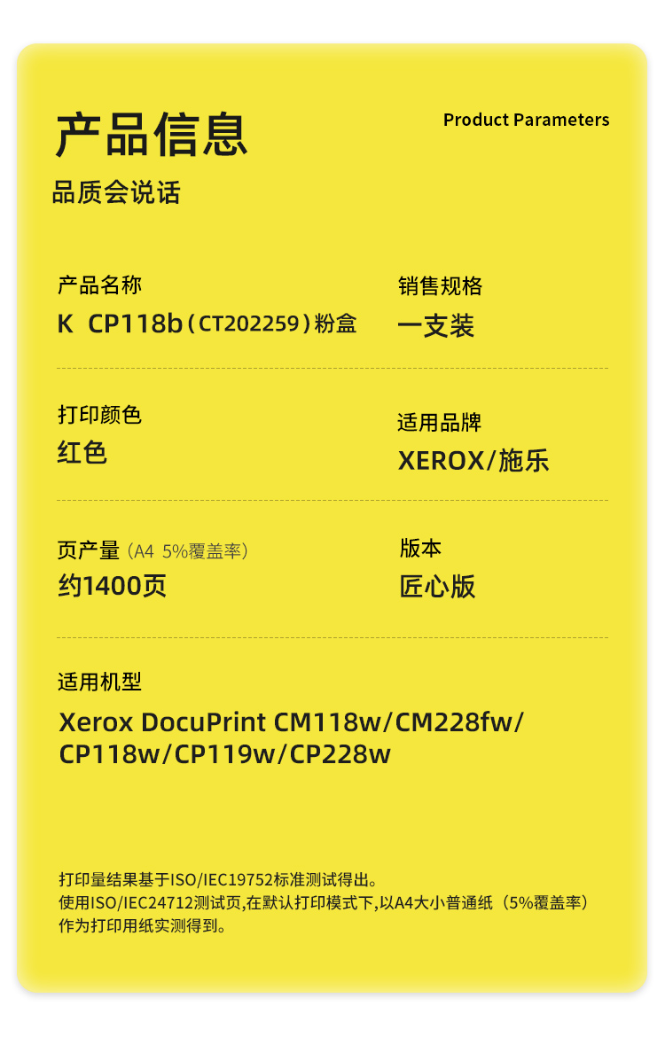 商品标题:科思特(KST)兼容K CP118b(CT202259) 匠心版粉盒(鼓粉分离)红色(适用富士施乐CM118w/CM228fw)打印页数:1400页(单位:支)