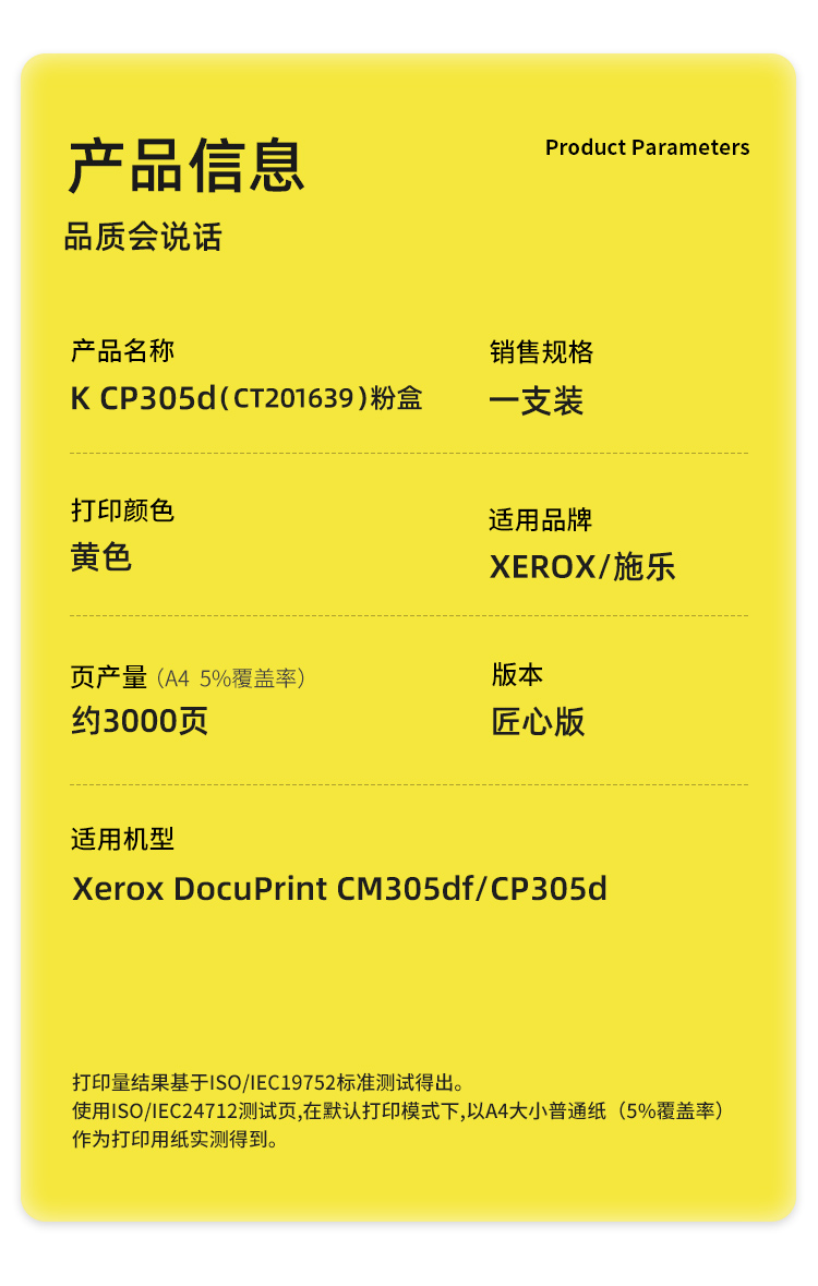 商品标题:科思特(KST)兼容K CP305d(CT201639) 匠心版粉盒(鼓粉分离)黄色(适用富士施乐Xerox DocuPrint CM305df/CP305d)打印页数:3000页(单位:支)