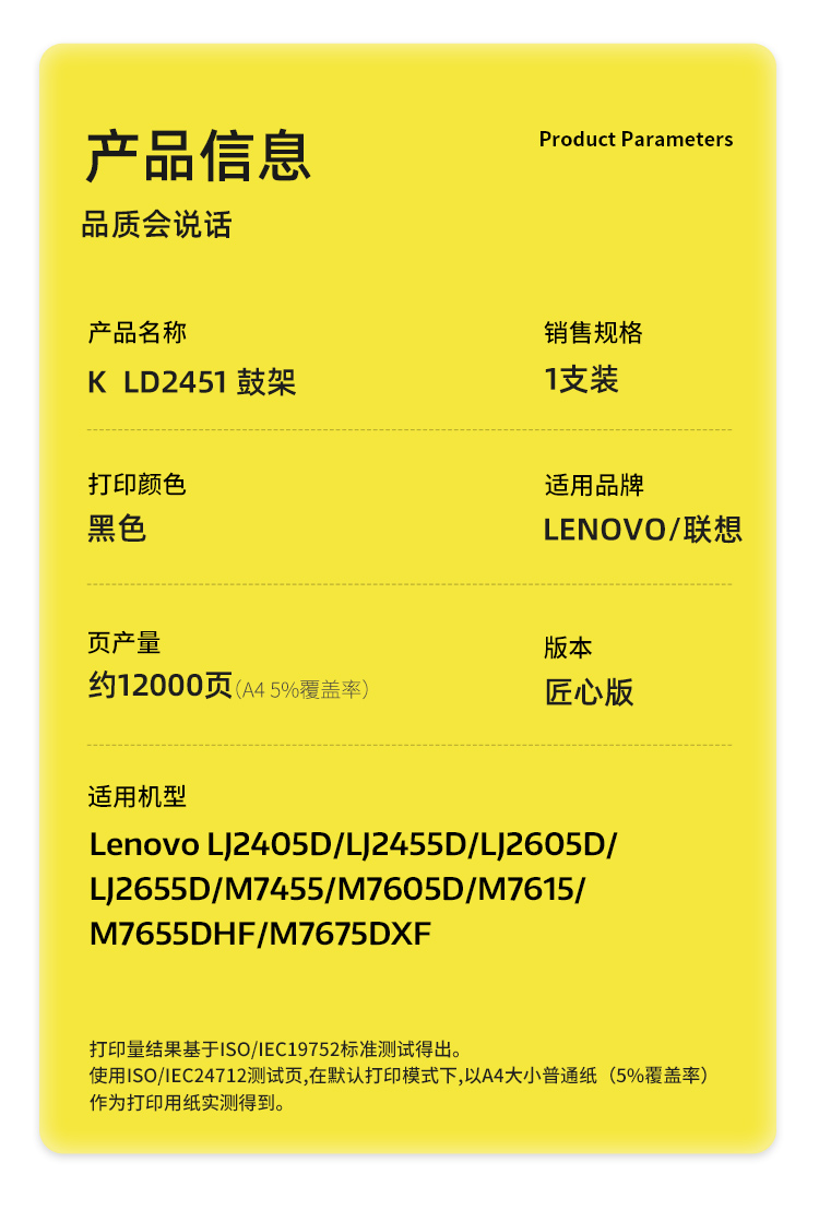 商品标题:科思特(KST)兼容K LD2451 匠心版鼓架(鼓粉分离)黑色(适用联想LJ2405D/LJ2455D/LJ2605D)打印页数:12000页(单位:支)