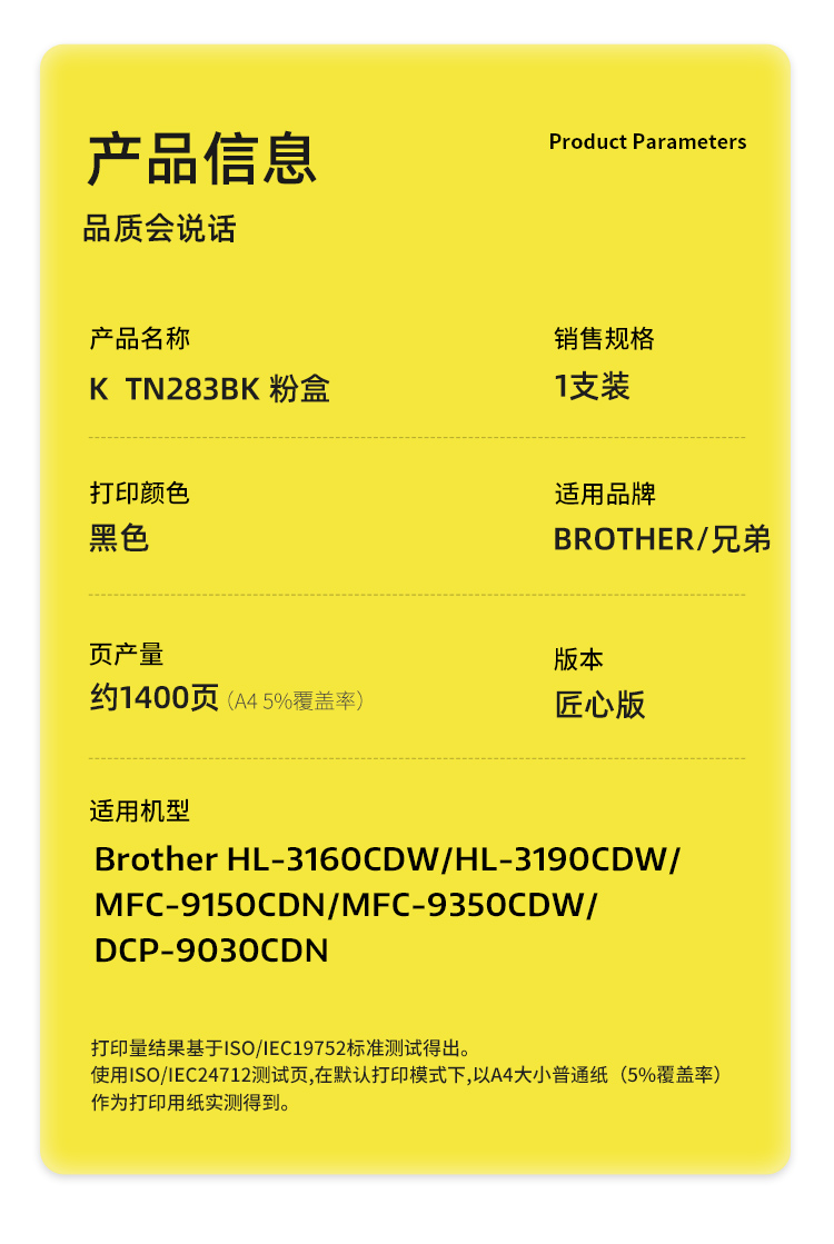 商品标题:科思特(KST)兼容K TN283BK 匠心版粉盒(鼓粉分离)黑色(适用兄弟HL-3160CDW/HL-3190CDW)打印页数:1400页(单位:支)