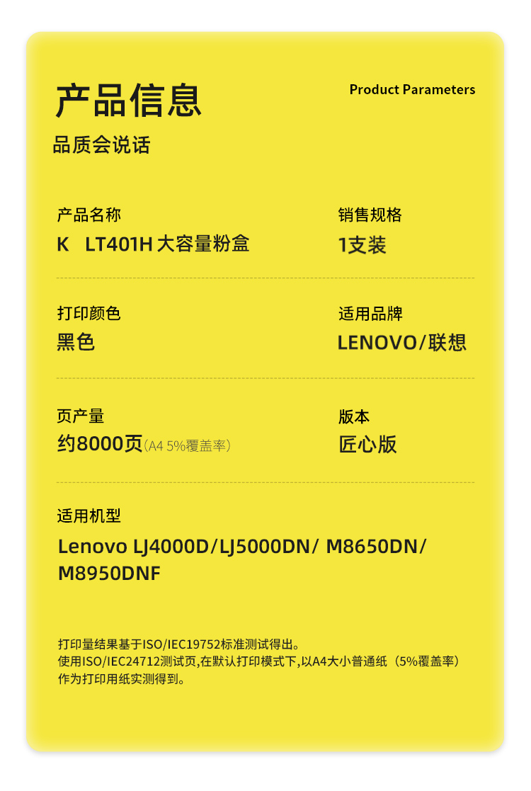 商品标题:科思特(KST)兼容K LT401H 匠心版大容量粉盒(鼓粉分离)黑色(适用联想LJ4000D/LJ5000DN/M8650DN/M8950DNF)打印页数:8000页(单位:支)