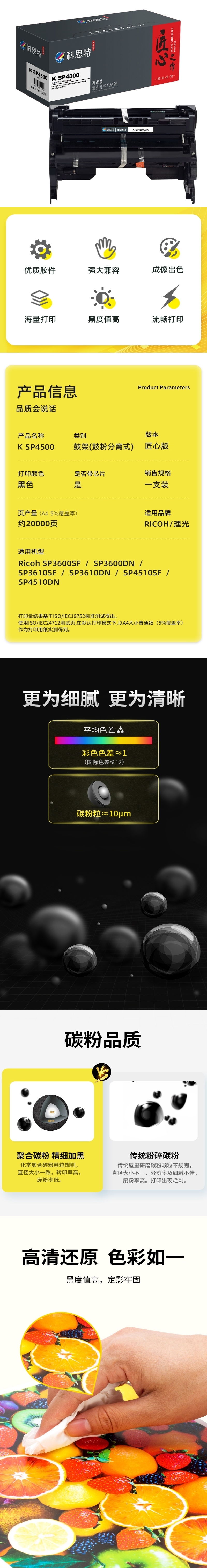 商品标题:科思特(KST)兼容K SP4500 匠心版鼓架 黑色(适用理光Ricoh SP3600SF/SP3600DN/SP3610SF/SP3610DN/SP4510SF/SP4510DN)打印页数:20000页(单位:支)
