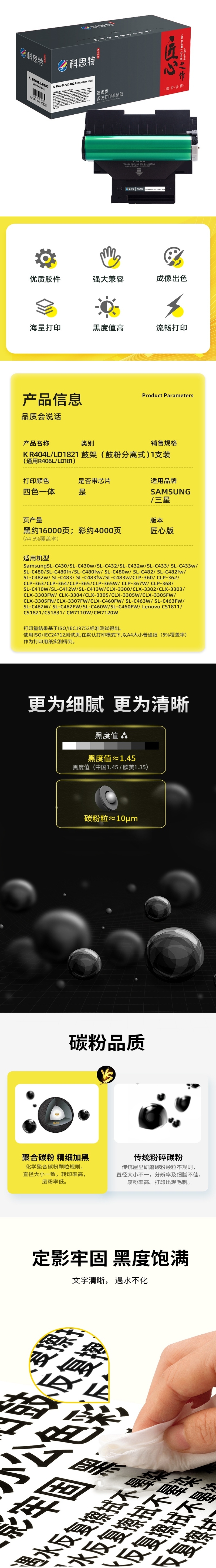 科思特(KST)兼容K R404L/LD1821(通用R406L/LD181) 匠心版鼓架 四色一体(适用三星Samsung SL-C430/SL-C430w/SL-C432/SL-C432w/SL-C433/SL-C433w/SL-C480/SL-C480fn/SL-C480fw/SL-C480w)打印页数:黑色16000页、彩色4000页(单位:支)