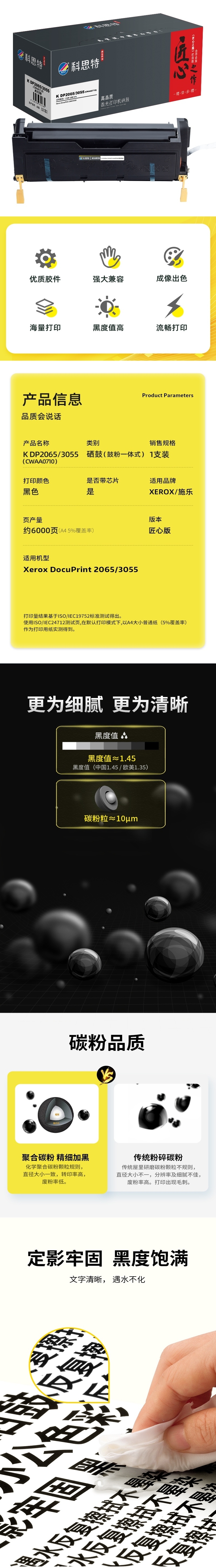 商品标题:科思特(KST)兼容K DP2065/3055(CWAA0710) 匠心版硒鼓 黑色(适用富士施乐Xerox DocuPrint 2065/3055)打印页数:6000页(单位:支)