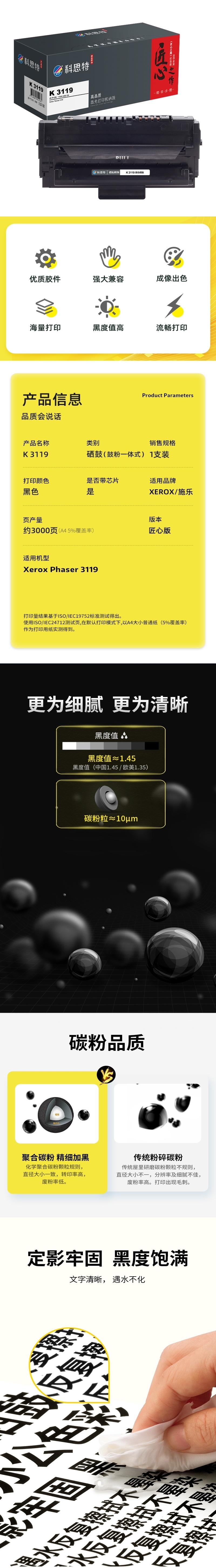 商品标题:科思特(KST)兼容K 3119 匠心版硒鼓 黑色(适用富士施乐Xerox Phaser 3119)打印页数:3000页(单位:支)
