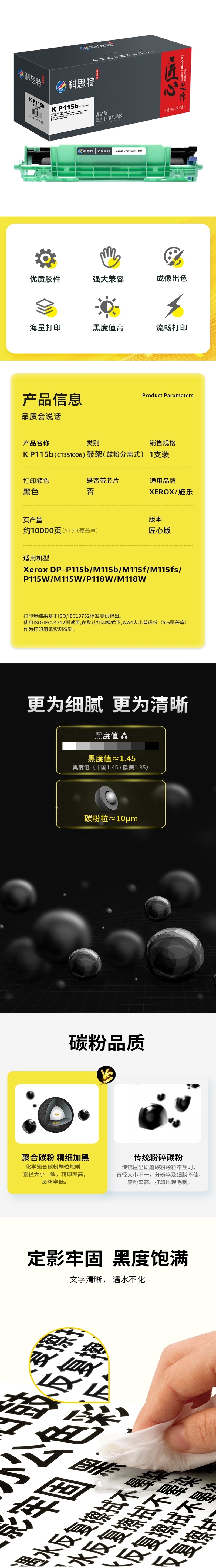 商品标题:科思特(KST)兼容K P115b(CT351006) 匠心版鼓架 黑色(适用富士施乐Xerox DP-P115b/M115b/M115f/M115fs/P115W/M115W/P118W/M118W)打印页数:10000页(单位:支)