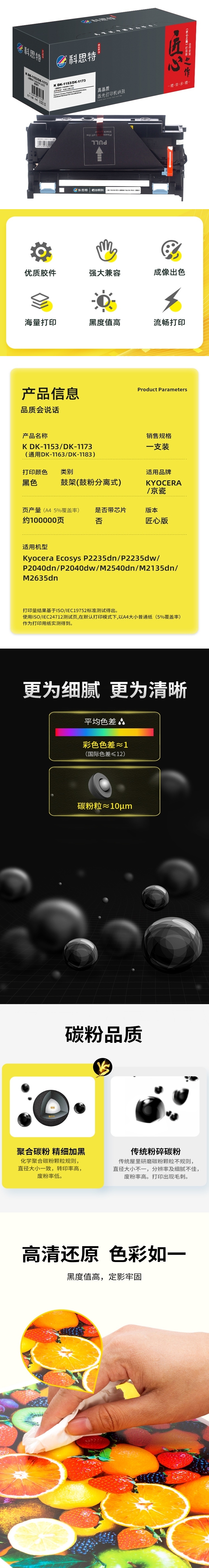 科思特(KST)兼容K DK-1153/DK-1173(通用DK-1163/DK-1183) 匠心版鼓架 黑色(适用京瓷Kyocera Ecosys P2235dn/P2235dw/P2040dn/P2040dw/M2540dn/M2135dn/M2635dn)打印页数:100000页(单位:支)