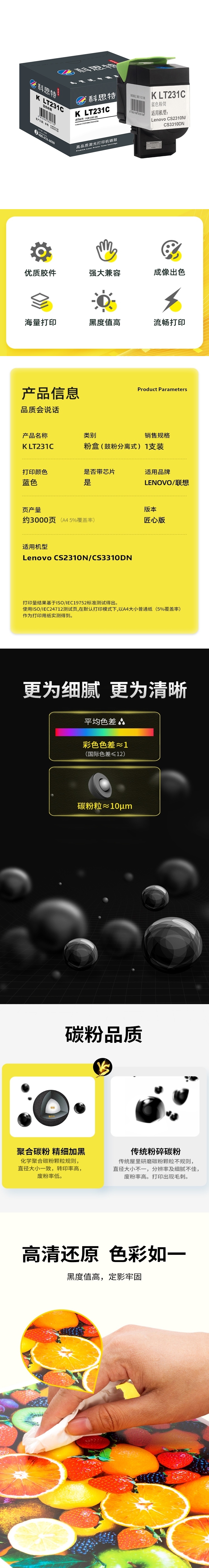 商品标题:科思特(KST)兼容K LT231C 匠心版粉盒 蓝色(适用联想Lenovo CS2310N/CS3310DN)打印页数:3000页(单位:支)