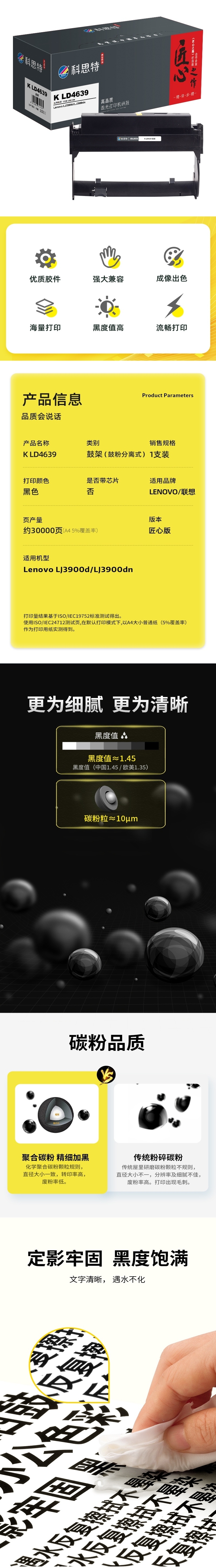商品标题:科思特(KST)兼容K LD4639 匠心版鼓架 黑色(适用联想Lenovo LJ3900d/LJ3900dn)打印页数:30000页(单位:支)