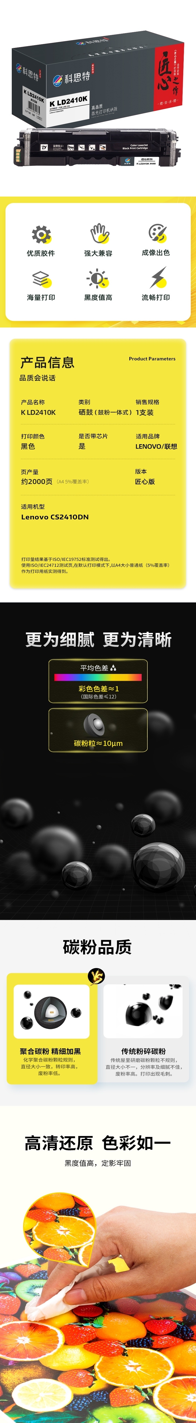 商品标题:科思特(KST)兼容K LD2410K 匠心版硒鼓 黑色(适用联想Lenovo CS2410DN)打印页数:2000页(单位:支)