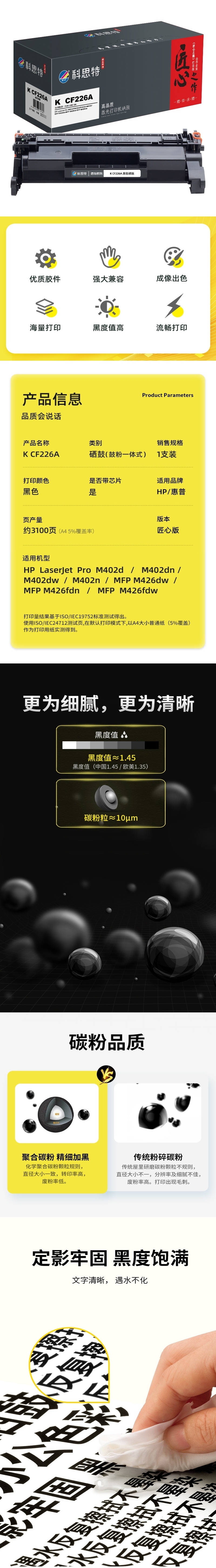 科思特(KST)兼容K CF226A 匠心版硒鼓 黑色(适用惠普HP LaserJet Pro M402d/M402dn/M402dw/M402n/MFP M426dw/MFP M426fdn/MFP M426fdw)打印页数:3100页(单位:支)