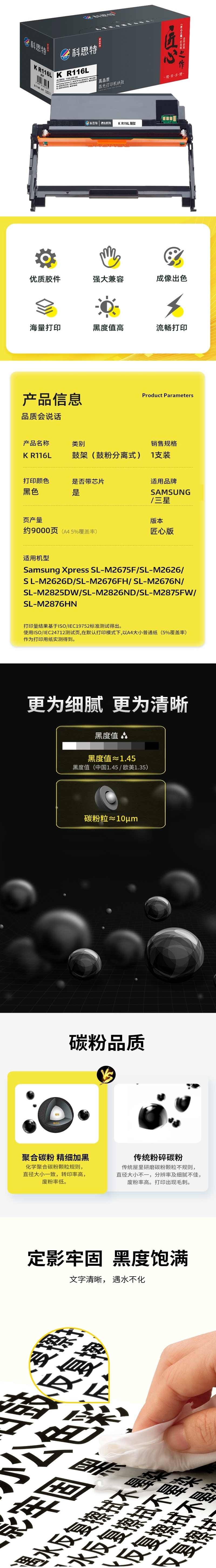 科思特(KST)兼容K R116L 匠心版鼓架(鼓粉分离)黑色(适用三星Samsung Xpress SL-M2675F/SL-M2626/SL-M2626D/SL-M2676FH/SL-M2676N/SL-M2825DW/SL-M2826ND/SL-M2875FW/SL-M2876HN)打印页数:9000页(单位:支)